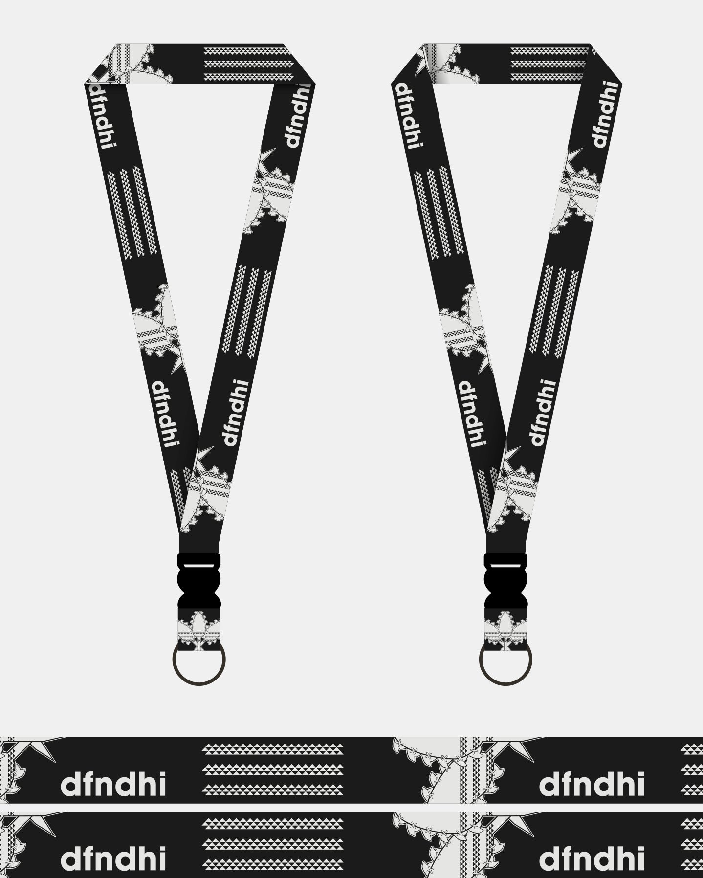 Defend Hawai'i accessories. One of our most popular products and an easy gift for anyone, a Defend Hawai'i lanyard. Lei O Mano Sport, a three stripe parody on black.