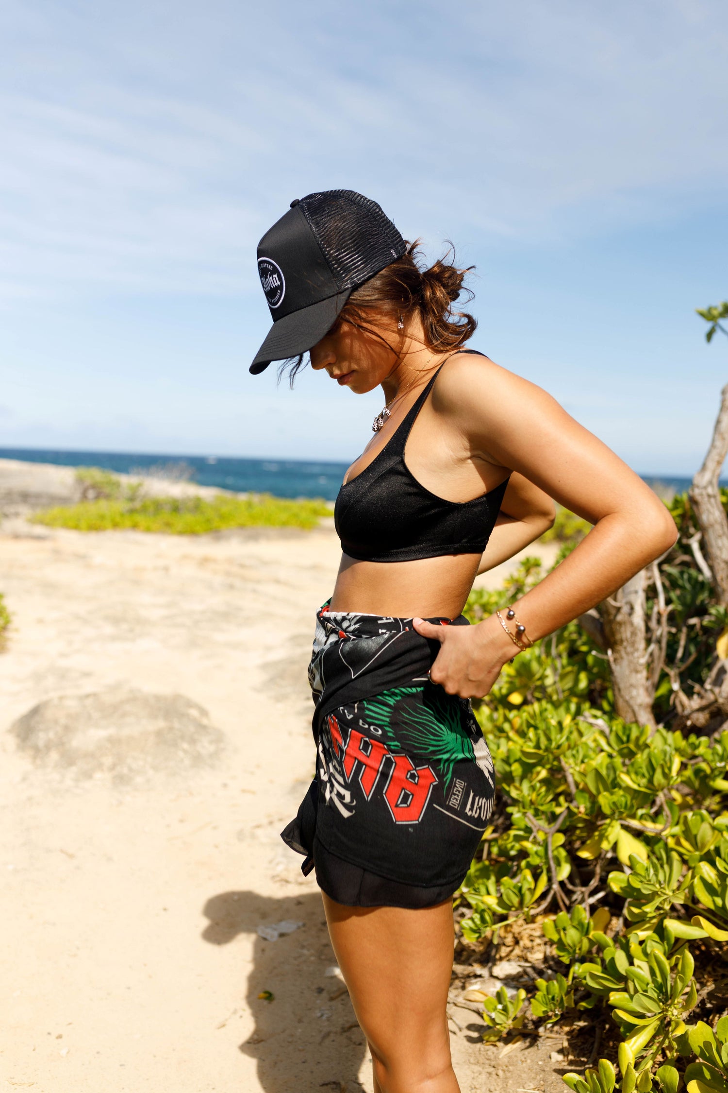 Defend Hawai'i- Our newest Patchwork lightweight pareo. This one comes in multi-colors with a black trim. Perfect for daily or weekly dose of the beach. Hawai'i das why! Wrap it or wear it, these pareos define comfort.