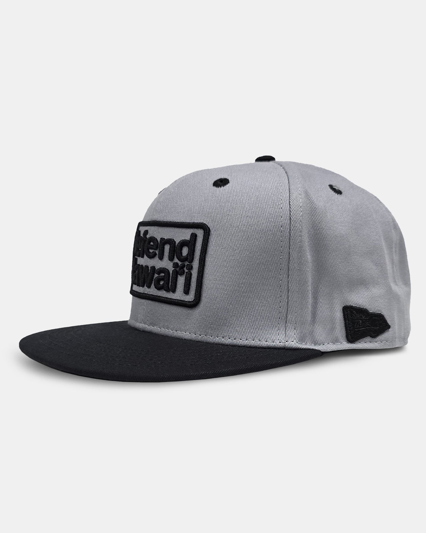 Defend Hawai'i - Our newest hat design with our classic DH Apparel logo embroidered in black on a gray crown snapback hat. A hae Hawai'i (Hawaiian flag) patch embroidered on it's side. This one is a gray snapback hat, with a gray crown, gray eyelets, gray brim, and button with a snap closure.