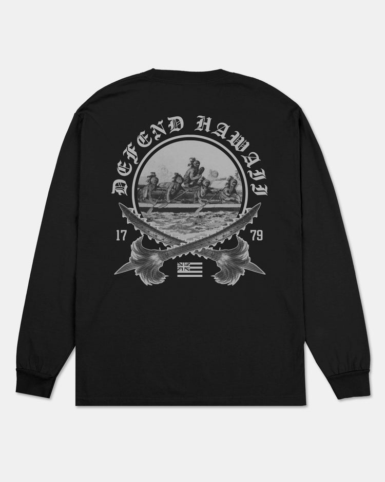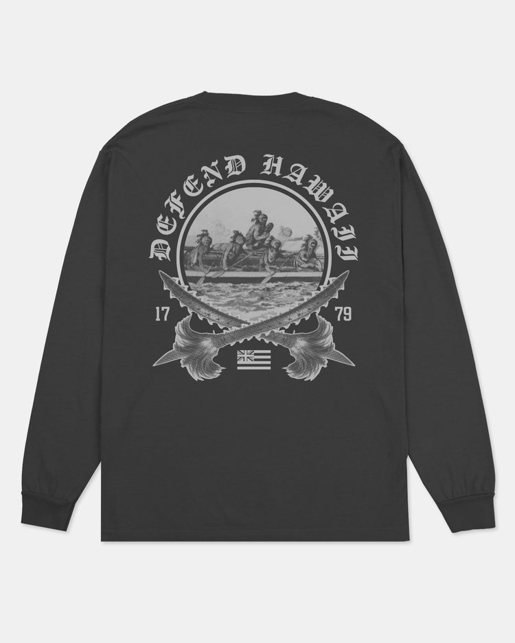 Defend Hawai'i - An ode to our ancestors and their powerful way of life, this is Ikaika Wa'a. Featuring a hae pocket hit and framed photo on the back. This one comes in gray ink on black or charcoal casual-fit tank top.
