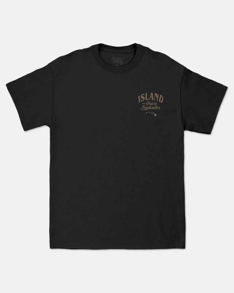 Defend Hawai'i - A new addition to our eradicators sage, our pua'a 'ahiu shap is back for da boar huntahz. Pest dispute? You call-we answer. Featuring a pocket hit and mayjah back hit. Pick your favorite color way. This one comes in orange and tan ink on a black or brown casual-fit tee.