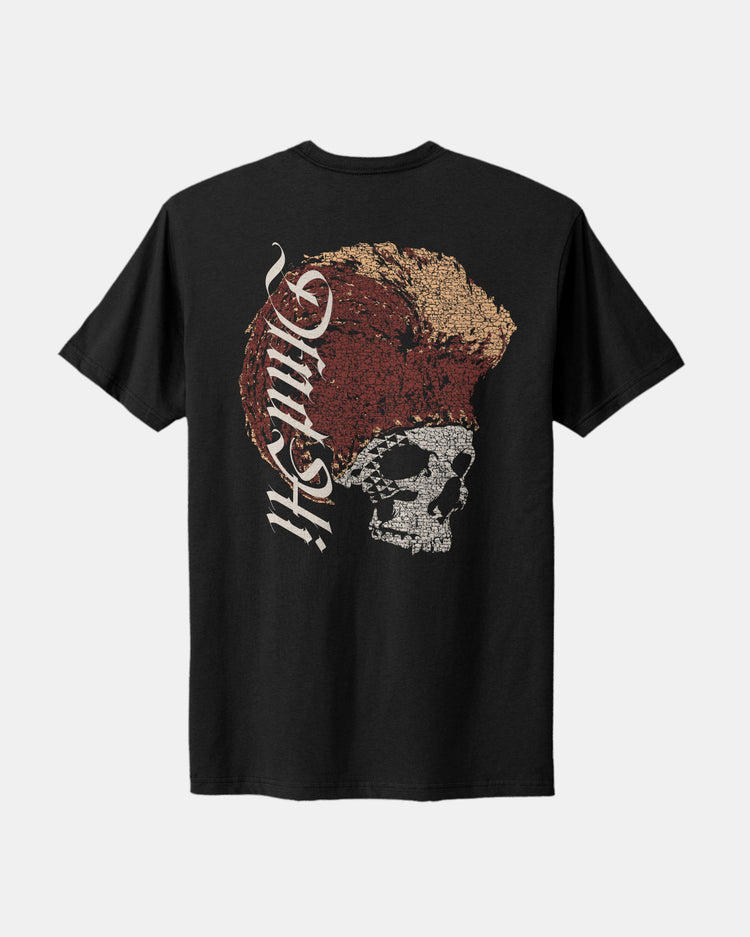Defend Hawai'i - There's something about the Ali'i Po'o that always gives you a sense of pride. This time as a Skulii Po'o on a clean pocket hit and roaring back hit. Pick your favorite colorway. This one comes in white, red, and gold ink on a black premium fit t-shirt. Your everyday tee to DEFEND with.