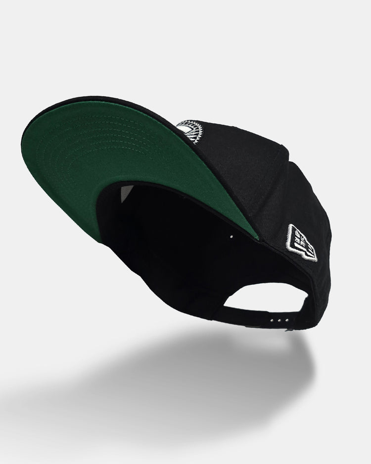 Defend Hawai‘i - Bringing back our staple headwear, this one is a classic, Po'o Rebel. This time embroidered in white on a black snapback. A hae Hawai'i (Hawaiian flag) patch embroidered on it's side. This one is a cotton a-frame snapback hat, with a black crown, black eyelets, black brim, green underbrim, and button with a snap closure.